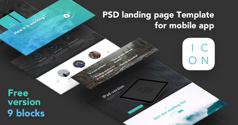 Free version ICON | PSD landing page Template for mobile app